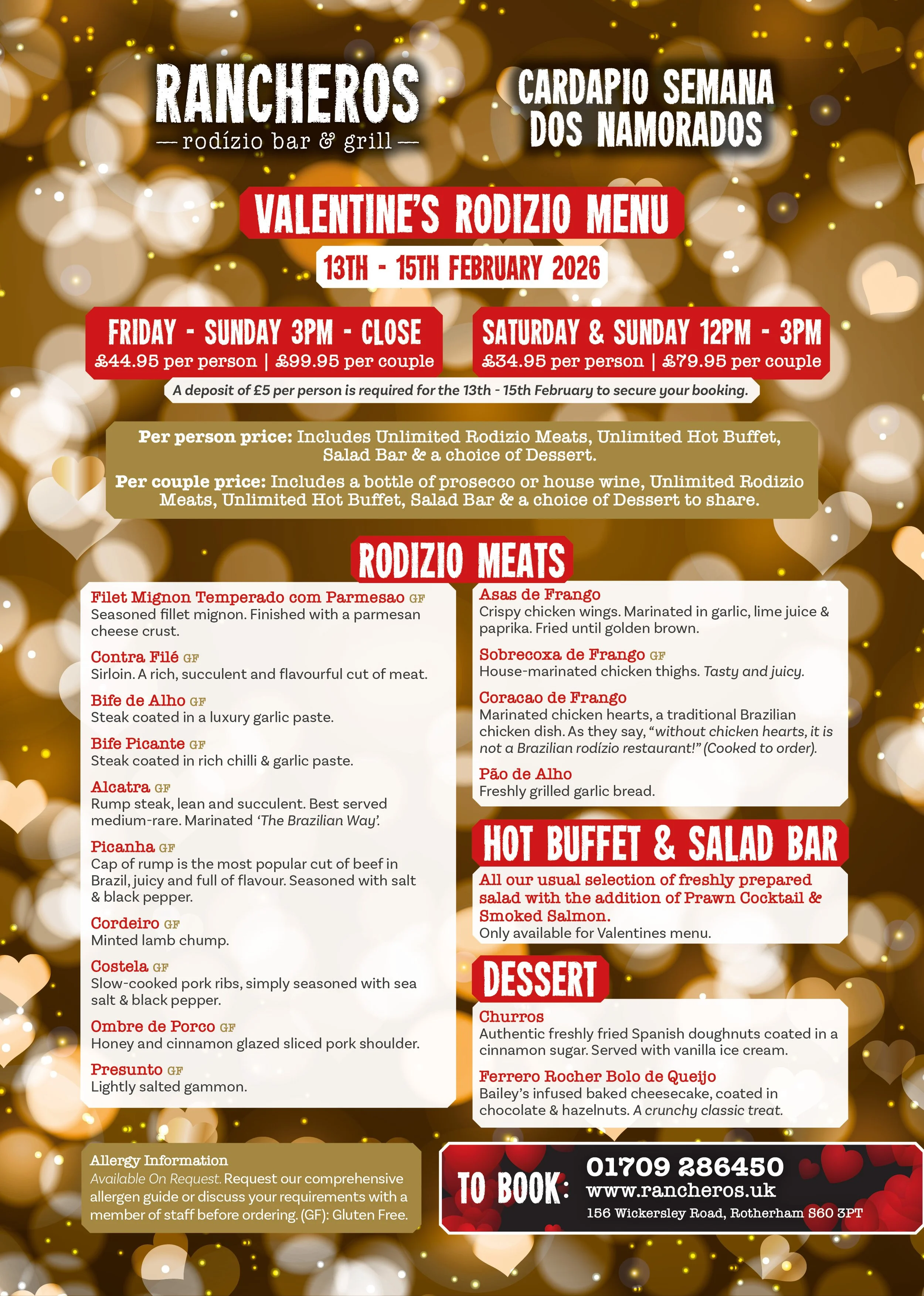 Savour unlimited Rodizio meats, delight in a hot buffet of comforting favourites, explore our fresh and colourful salad bar, and end with a decadent dessert of your choice—perfect for sharing with someone special.